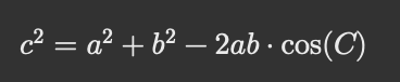 float cSide = Mathf.Sqrt(Mathf.Pow(aSide, 2) + Mathf.Pow(bSide, 2) - 2 * aSide * bSide * Mathf.Cos(cRad));