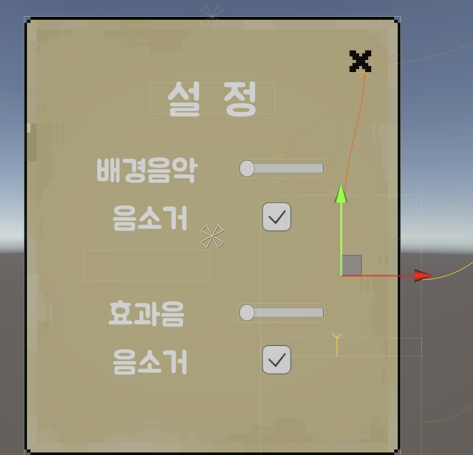 UI 버튼이 계속 보이길래, public Gameobject settingUI를 추가해서, 로딩할때 비활성화, 씬 전환되며 활성화되게 추가해주었다.