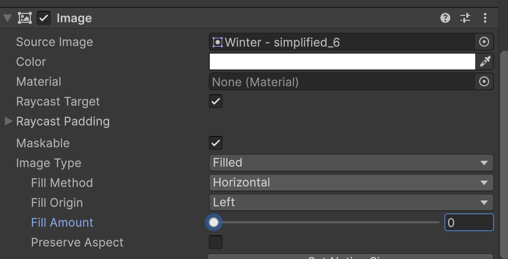 | Fill Amount | 0.0~1.0 사이 값으로 채워진 정도 (스크립트에서 조절 가능) |