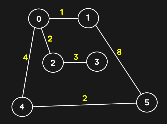 { 0, 8, 0, 0, 2, 0 }, // 5번 노드